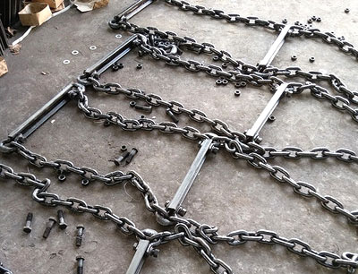 2.2刮板鏈條是埋刮板輸送機的關鍵部件,安裝前應事先檢查刮板鏈條節與節之間是否轉動靈活,如不靈活應拆下除銹清洗或用砂紙打磨直至轉動靈活為止,嚴禁涂抹潤滑油脂。
